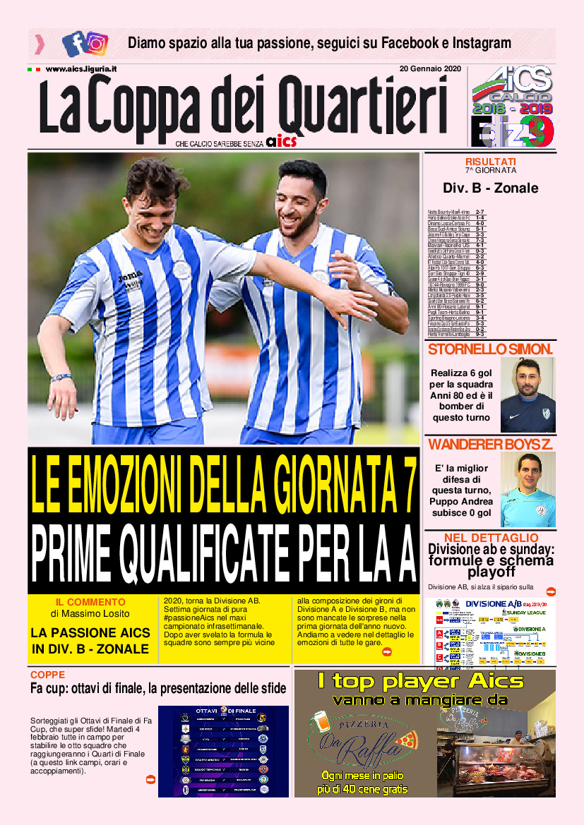 2020, torna la Divisione AB. Settima giornata di pura #passioneAics nel maxi campionato infrasettimanale. Dopo aver svelato la formula le squadre sono sempre più vicine alla composizione dei gironi di Divisione A e Divisione B, ma non sono mancate le sorprese nella prima giornata dell'anno nuovo. Andiamo a vedere nel dettaglio le emozioni di tutte le gare.