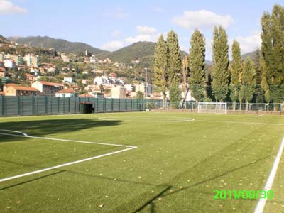 TERRENO: Erba art DIMENSIONI: Calcio a 7: 62x30 * NOTE TECNICHE: Rinnovati erba e impianto di illuminazione nell'estate del 2011. Ottimo campo per dimensioni e parcheggi (sulla strada ma numerosi). Sicuramente da rinnovare gli spogliatoi.
