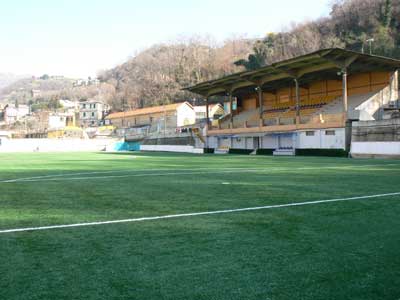TERRENO: Erba art DIMENSIONI: Calcio a 11: 50x100 NOTE TECNICHE: Storico campo a 11. Una volta (ai tempi dei pionieri) era uno stadio (ma conserva un'ottima tribuna) ora รจ un po' stretto.