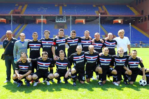 Ora possiamo davvero dirlo, il sogno è diventato realtà per i 30 partecipanti alla prima edizione del derby di Livethedream. Trenta appassionati, tifosi di Genoa e Samp che ieri mattina allo stadio Luigi Ferraris si sono sfidati in un vero e proprio match affiancati da Tomas Skuhravy e Marco Lanna sotto l’attenta guida di Claudio Onofri ed Enrico Nicolini dalla panchina. Sul campo è finita 4-1 per il Genoa che ha rimontato lo svantaggio iniziale della Samp grazie alla rete messa a segno da Panico, con un tiro dalla distanza che si è infilato all'incrocio. Per il numero 10 blucerchiato esultanza alla Totti con dedica al figlioletto in arrivo. Il pareggio del Genoa è arrivato alla fine del primo tempo con il capitano rossoblù Giulio Alberti che dopo il gol è corso ad abbracciare i compagni in panchina con un’esultanza da giocatore vero. Nel secondo tempo il Genoa ha cambiato marcia e ha dilagato trascinato dagli ingressi in campo di Solidoro, autore di una doppietta, e dell'assessore regionale allo Sport, Matteo Rossi in versione assist man. Buona anche la prova dell'assessore allo Sviluppo Economico del Comune di Genova, Francesco Oddone in versione regista "alla Bortolazzi". Di Grespigna l'altro gol rossoblù che ha celebrato al meglio la sua maglia numero 7 presa in onore del capitano Rossi.
